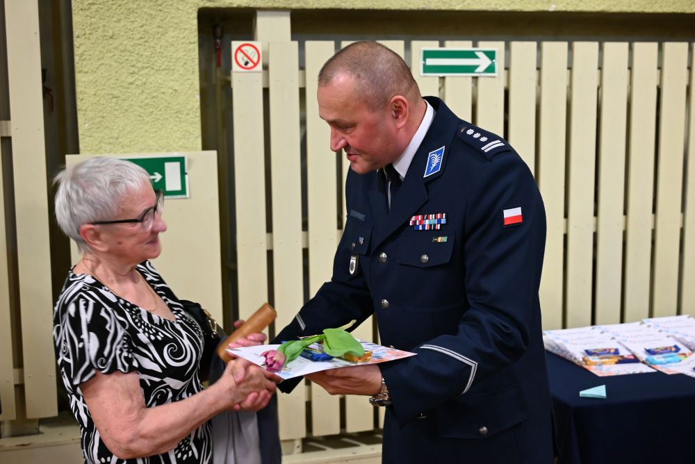 Następnie Komendant Centrum Szkolenia Policji w Legionowie insp. Robert Żółkiewski wspólnie ze swoim Zastępcą insp. Tomaszem Rylskim oraz Naczelnikiem Wydziału Dowodzenia mł. insp. Jakubem Piotrowskim wręczyli wszystkim Paniom upominki – słodkości oraz kwiaty – składając serdeczne życzenia zdrowia, pomyślności i wielu sukcesów zarówno w życiu zawodowym, jak i prywatnym.