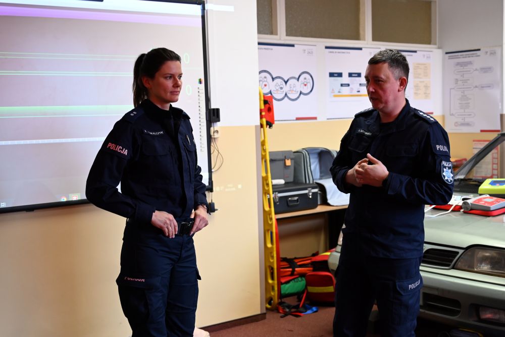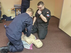 - pokaz udzielania pierwszej pomocy przedmedycznej oraz ćwiczenia z zakresu resuscytacji krążeniowo-oddechowej i użycia AED,