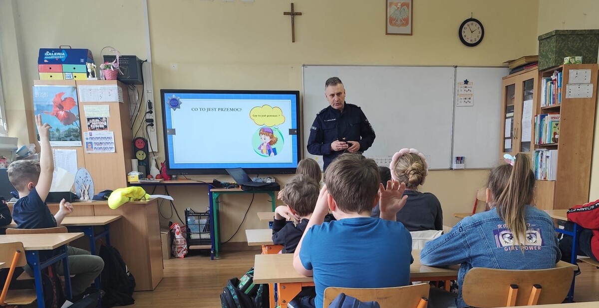 Zajęcia skierowane były do uczniów klas 1–8 i dotyczyły problematyki zachowań agresywnych wśród dzieci i młodzieży oraz konsekwencji wynikających z tego rodzaju postaw. Funkcjonariusze omówili zarówno aspekty prawne, jak i społeczne agresji, zwracając uwagę na odpowiedzialność za własne czyny oraz wpływ zachowania na relacje rówieśnicze i środowisko szkolne.
